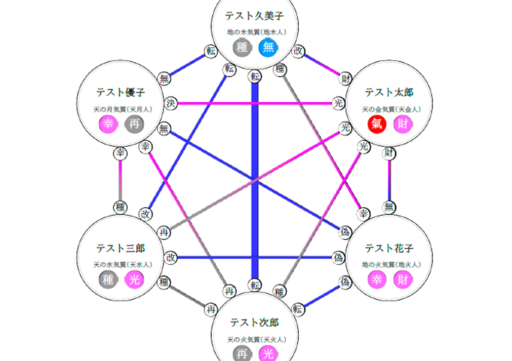 ご本人とお相手の生年月日から御縁関係を導き出します。(最大6名まで)